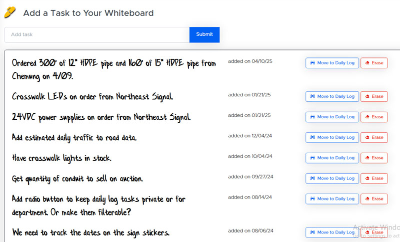 The daily log allows you create a "daily sheet" and track your department's work history.