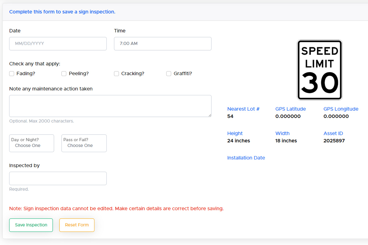 whether it's correcting a location, updating an inspection date, or changing the sign type after a replacement.